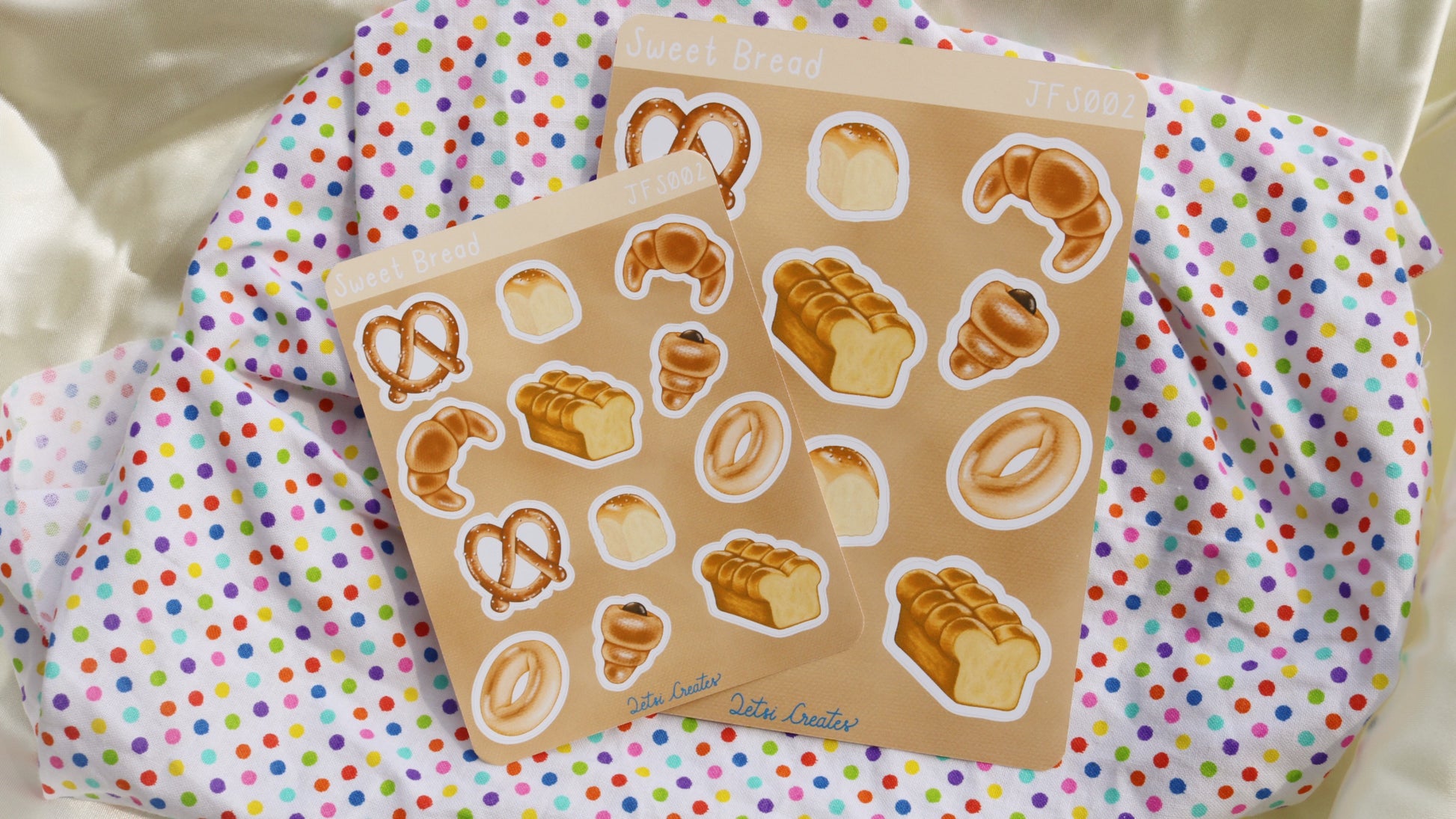 The best of breads in one sticker sheet: croissant, brioche, pretzel, sweet bun, bagel and chocolate cornet